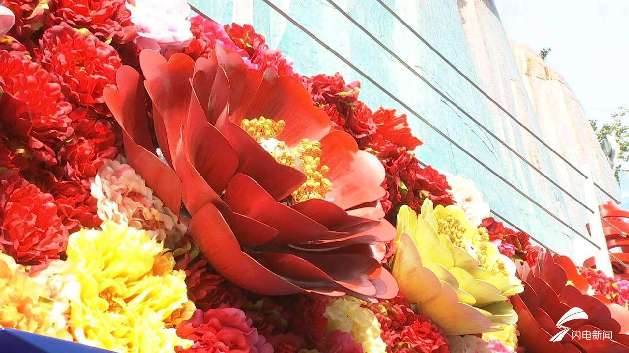 齐鲁网10月1日讯 盛世花开,欢乐祥和。在今天的庆祝中华人民共和国成立70周年大会上,山东“国泰民安”彩车前端3000余朵牡丹花组成的五彩缤纷的花海,格外引人注目。