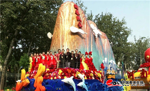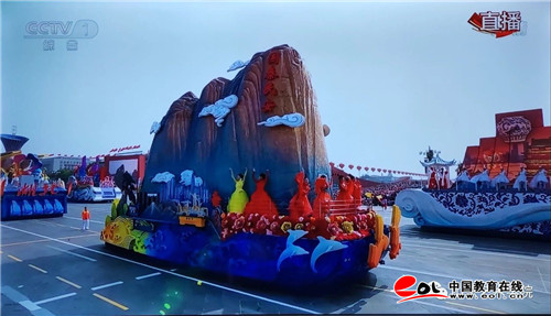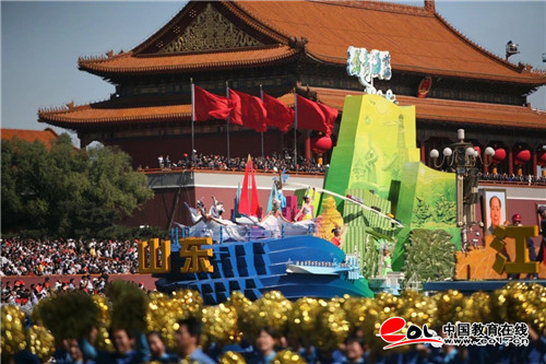 中国教育在线讯 秋水长天,盛世欢歌,壮丽70年,阔步新时代。10月1日上午,由中共山东省委办公厅承制,山东艺术学院承担设计、主要制作、彩饰和展演的山东彩车“国泰民安”,在首都北京天安门广场盛大的群众游行和精彩的联欢活动中隆重登场。