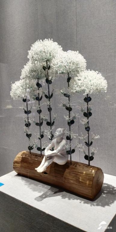第四件,《蒲公英》,一片清新的玄想世界。有陶琉、原木桩和金属等多种材料,却有如此和谐。