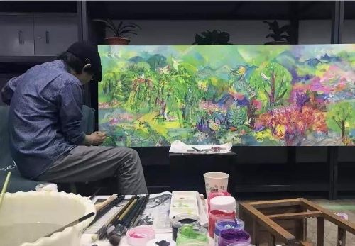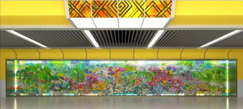 花园东路站公共艺术墙设计作品《生生不息》由设计学院远宏、于鞍宁等设计制作。结合“花园东”这一富有诗意的名字,他们设计出车站比邻花园而居,百花绚烂、蝶舞翩跹的画面,一首“诗与远方”跳出心田,在这油画般的世界里轻声吟唱,地下列车飞驰、地面柳风荷香,寓意人与自然相处、生生不息,象征着蓬勃的希望。