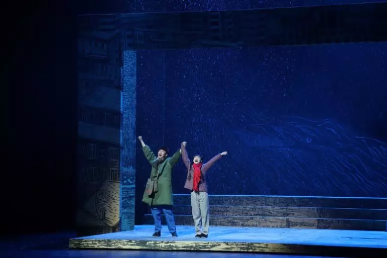 “老师,我考上剧团了!”“老师,我准备投拍我的的第三部电影了。”“老师,我博士毕业了,我一定能通过试讲,成为像您一样的老师。”……12月28日、29日,由山东艺术学院出品的无场次原创话剧《雪落无声》在山东省会大剧院歌剧厅上演。演出结尾处,话剧主人公某艺术院校张建博老师的学生向老师报告自己的艺术人生路,这也是这部话剧的主创团队对参演学生的未来所寄予的殷切希望。