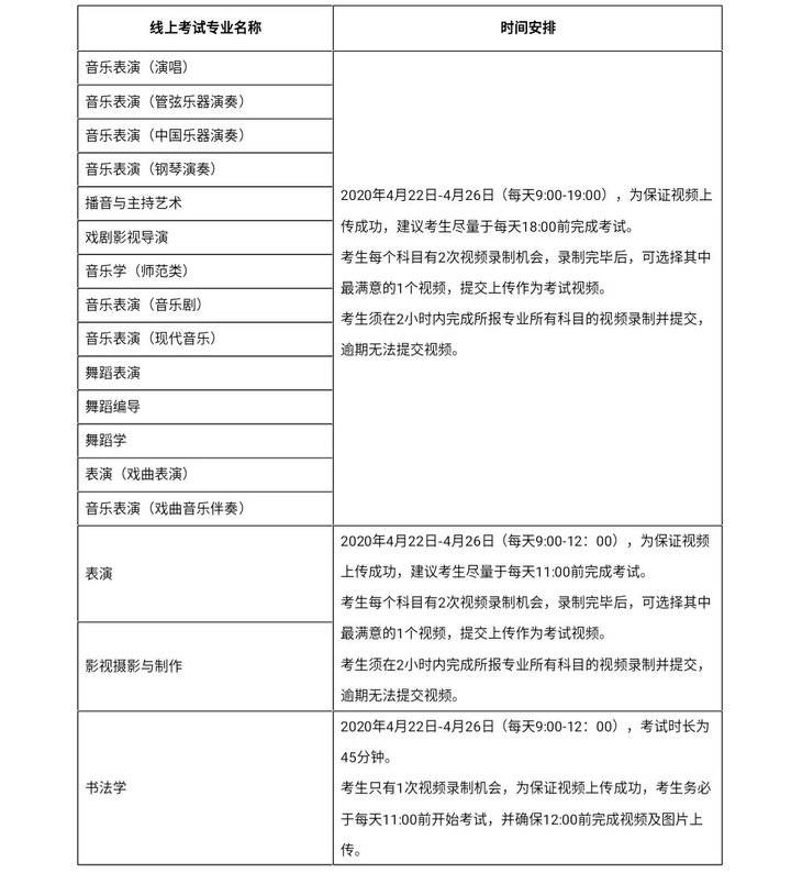 考试形式包括线上考试和线下考试,各专业具体考试形式详见下表: