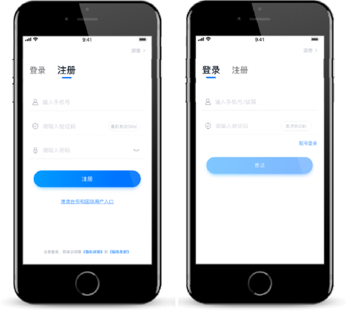 进入登录页,点击【注册】,输入手机号,获取填写手机验证码,设置密码后,即可完成注册。