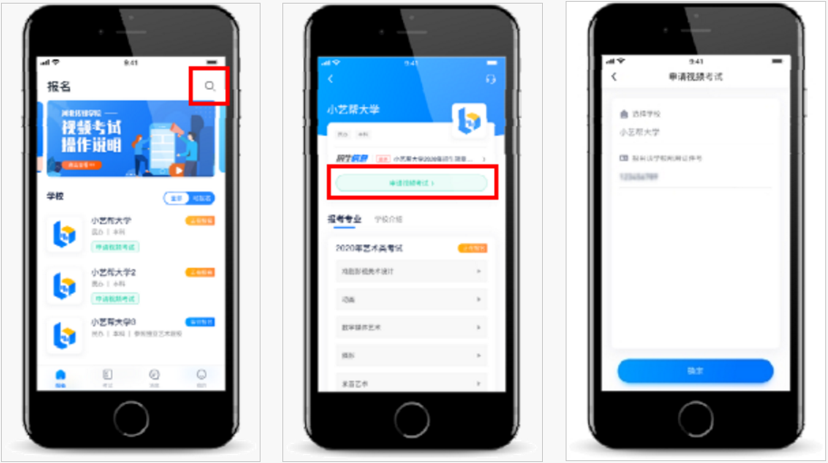 认证通过后,考生可通过以下步骤,申请参加我校的视频考试。不同专业需要单独申请。