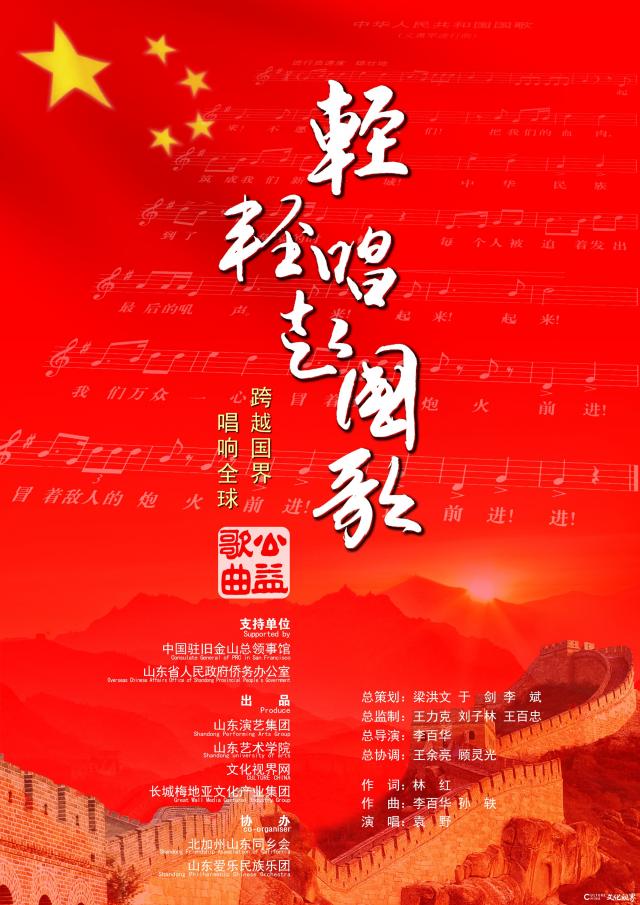 据悉,李百华和林红在今年2月初倾情完成了原创公益歌曲《祖国知道》国内版、海外版之后,又把情感触角和创作激情再次投入到爱国主义作品的主题创作中,他们饱蘸爱国激情,满怀对祖国山河的挚爱,于近期创作出了歌曲《轻轻唱起国歌》。这部声乐新作得到了中国驻旧金山总领事馆、山东省人民政府侨务办公室的支持,由山东演艺集团、山东艺术学院、文化视界网、长城梅地亚文化产业集团联合出品,由美国北加州山东同乡会、山东爱乐民族乐团协办,公益支持:银丰地产集团,媒体支持:大众网·海报新闻、齐鲁晚报·齐鲁壹点、齐鲁网·闪电新闻、鲁网·速豹新闻、济南广播电视台·济南网等。