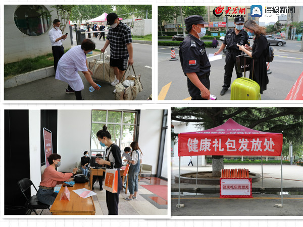 学校严密做好各项服务工作,全力保障学生安全返校。返校当日,学校在济南西站、济南站、济南东站、长途汽车总站“点对点”接运学生返校。在两校区门口,学校安排了学工干部、医务人员、安保人员对返校学生进行体温检测、身份登记,对学生行李进行消毒,并用摆渡车将学生送到学生公寓和教学楼。在公寓入口,学生经过面部识别及自动测温系统的身份识别和体温测量登记后进入宿舍,宿管人员和辅导员亲自帮学生将行李送到宿舍。午餐时间,餐厅为返校学生准备了丰盛餐食,学生测温并手部消毒后在餐厅单向就坐用餐。超市商品齐全,食品、生活用品充足,为返校学生的日常生活提供了基本保障。学校还为学生精心准备了装有《学生公寓疫情防控小贴士》、口罩、酒精消毒湿巾、中药香囊、返校餐券的健康礼包;相关二级学院还为毕业班学生定制了“永恒的记忆”纪念礼品,体现了对学生的浓浓关爱。