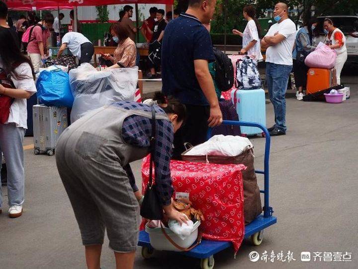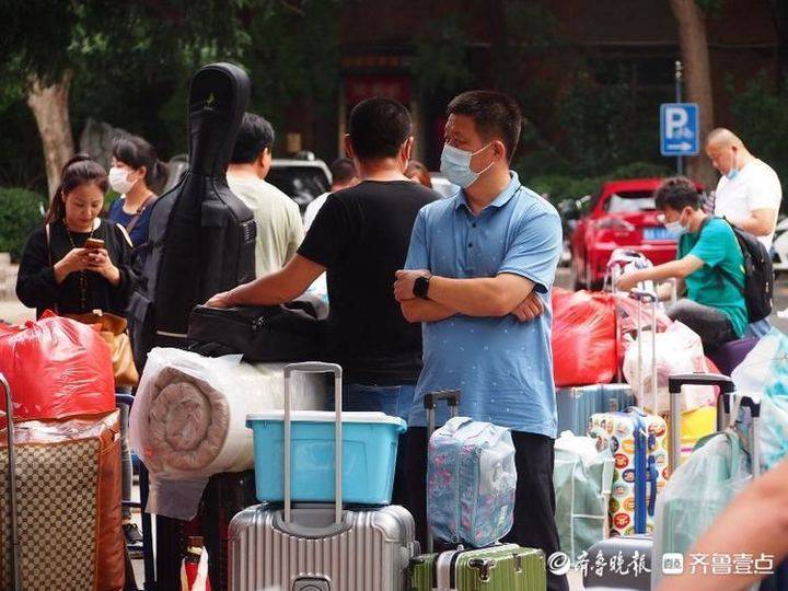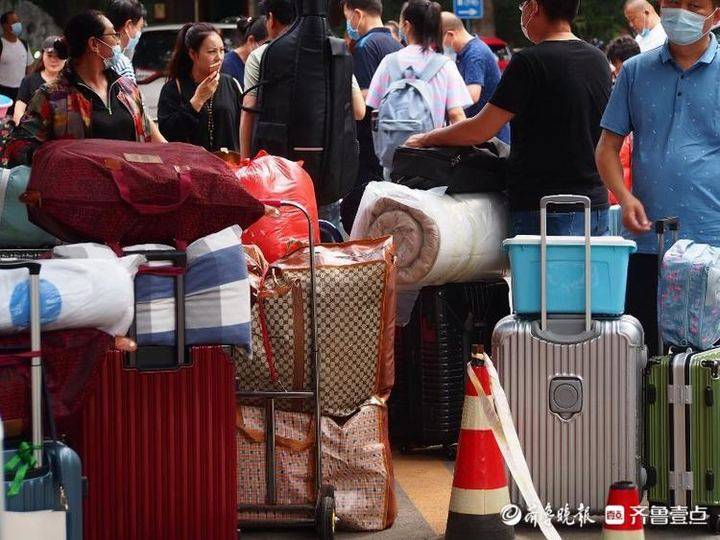 15日,山东艺术学院迎新现场,大批家长带着大小行李,构成壮观的箱包阵列。如今的新生报到带的东西确实多,从衣服到被褥到电子设备满当当,一个家长都拿不了,多数家庭全家出动。 齐鲁晚报·齐鲁壹点记者 周青先