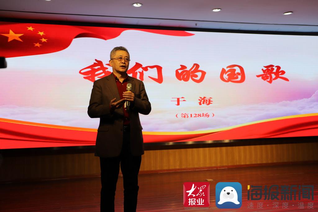 大众网·海报新闻讯(记者 管悦 王广灿)12月7日上午,著名音乐家、指挥家,国家一级指挥,第十一届、十二届全国政协委员,中国音协管乐学会主席,中国交响乐发展基金会副理事长,中国人民解放军军乐团原团长、音乐总监于海先生应邀莅临山东艺术学院为师生作了一场《我们的国歌——把国歌讲给你听》的专题报告会,受到热烈欢迎。