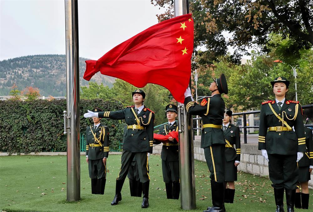 目前,校园国旗护卫队由39名来自各二级学院的优秀学生组成,他们多数在每年的全校新生军训中选拔,再经过几个月的强化训练后精编入队。这支队伍,维护着五星红旗的尊严与荣誉,以实际行动彰显出新时代大学生的爱国情怀。“责任”与“担当”是他们长期的坚守。(摄影:朱文君)