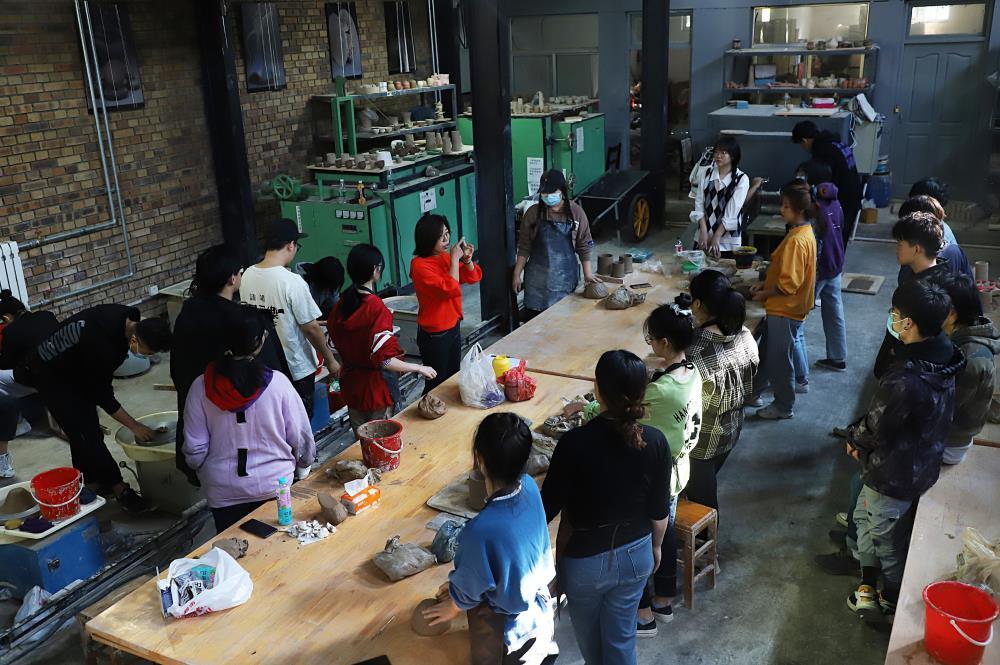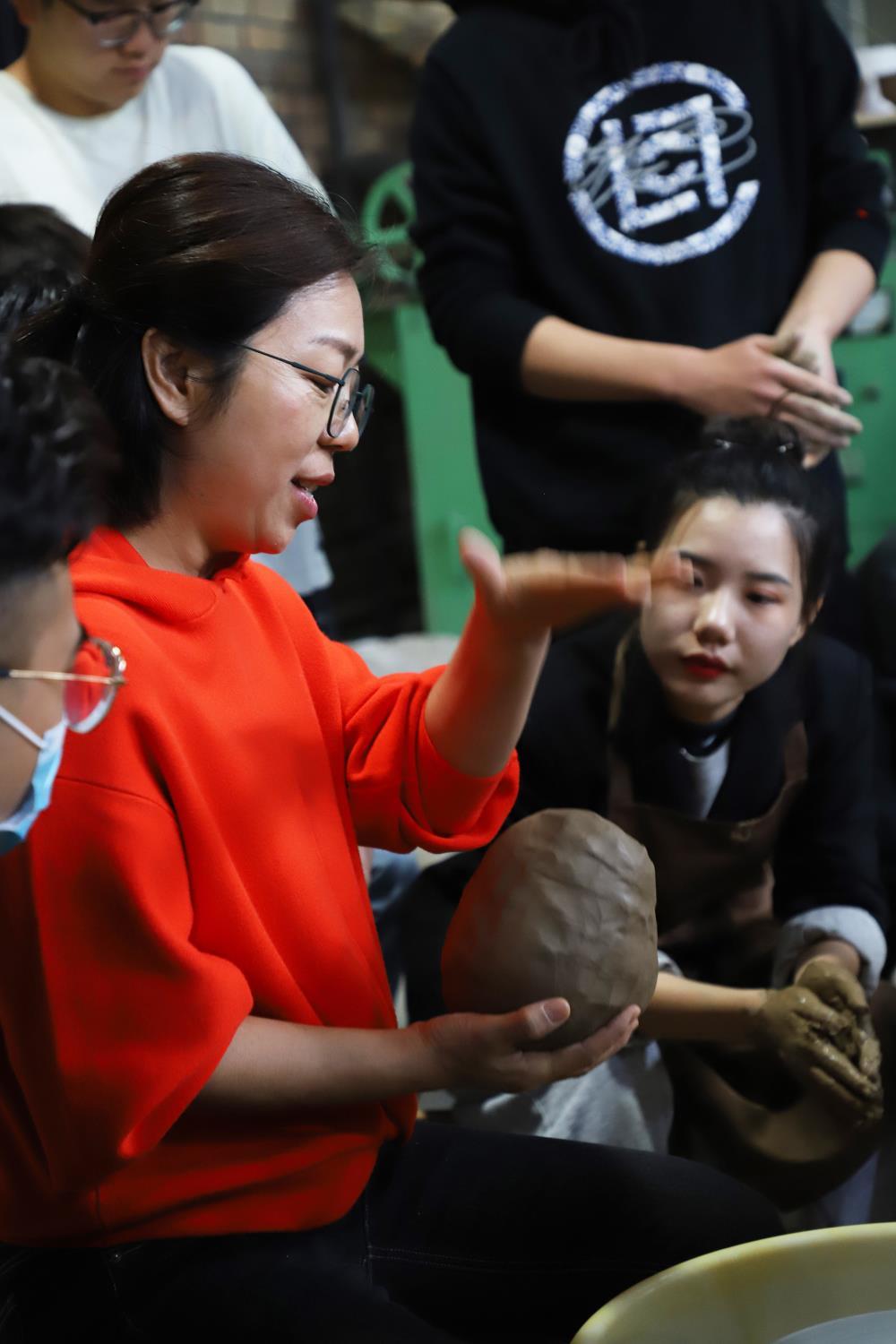 国庆节后第一节陶艺课上,李玉兰老师给同学们讲解实践拉坯的注意事项