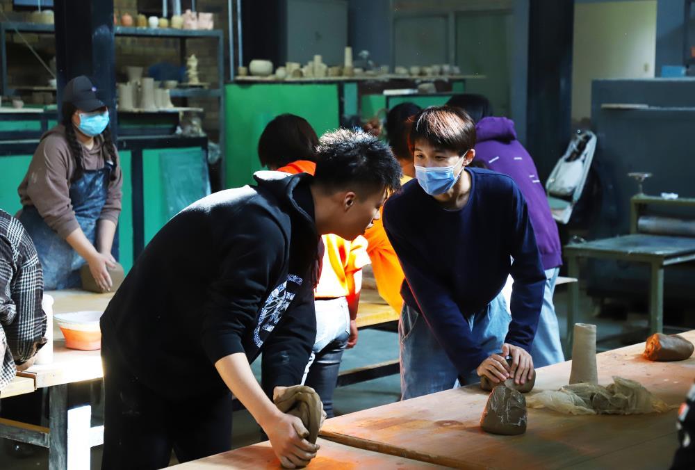 今年的10月1日恰逢中秋,由于疫情原因陶艺班的学生都没有回家,他们期待着节后的第一节陶艺课。10月2日,同学们早早地来到教室,为接下来的陶艺课程做了充分的准备。陶艺班的班主任李玉兰老师为同学们讲述“一块泥巴到一个精美陶艺品的历程”并亲自示范。她反复强调陶瓷作品的制作中任何一个程序都不能忽视。同学们刚接触到陶艺知识,求知若渴,课堂氛围热闹、有序。(摄影:朱文君)