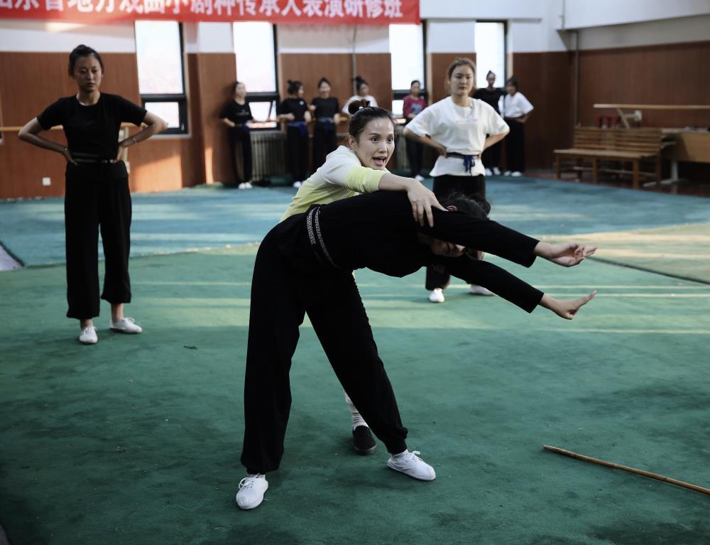 戏曲学院是山东艺术学院最具特色的学院之一。“操千曲而后晓声,观千剑而后识器。”戏曲艺术是中华优秀传统文化的瑰宝,戏曲学子以课堂与实践相结合的方式体验和感悟戏曲艺术的非凡魅力,传承其蕴含的文化精神。走进她们的课堂和舞台拍摄,看到她们为了一个动作在台下练上千次,演出前一首曲子反复唱上百次。“台上的精彩源于台下的精神”,灯光莫及之处,是反复练习后厚厚的茧子,是咬牙练功后滴落的汗水。她们努力在台下练习,为的就是和观众台上相遇。(摄影:张茜)