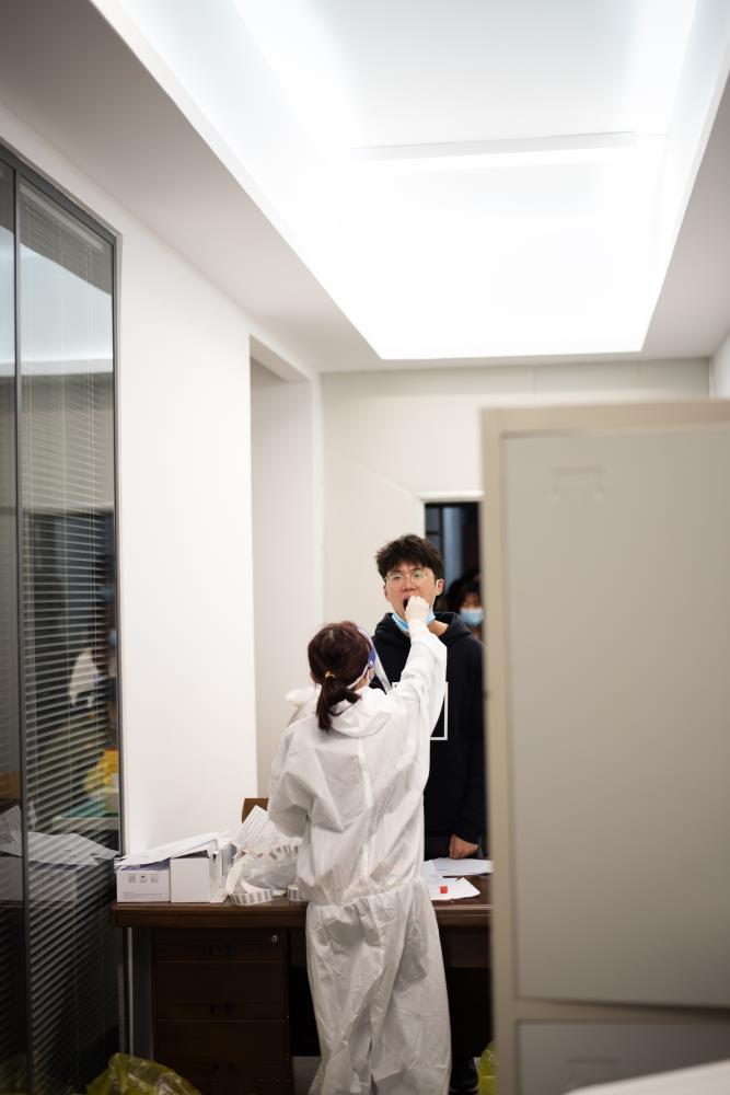 2020年10月中旬,青岛发现疫情后,山东省迅速制定并启动了核酸检测方案。与此同时,鉴于国庆期间的人员流动,山东艺术学院高度重视,只花了一天的时间就完成了与青岛疫情相关人员的核酸检测。(摄影:田俊)