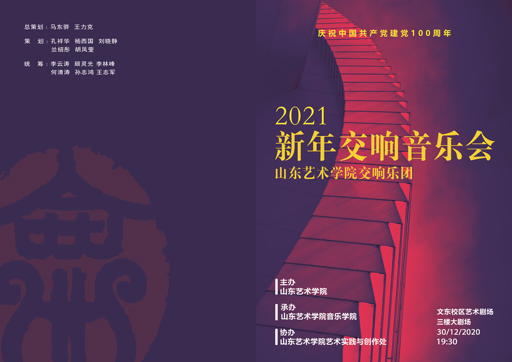 12月30日晚7:30,为迎接2021新年的到来,山东艺术学院举办2021新年交响音乐会。音乐会由山东艺术学院主办,山东艺术学院音乐学院承办、山东艺术学院交响乐团演出。乐团指挥由青年歌剧指挥江阳担任,音乐学院3位青年教师——第十二届中国音乐金钟奖“美声组”总决赛第一名获得者李鳌、音乐会与艺术歌曲及歌剧学院双硕士学位艺术家学位(德国艺术类最高文凭)获得者王晴、旅美青年钢琴家金宇博士参加演出。闪电新闻同步直播,敬请关注。
