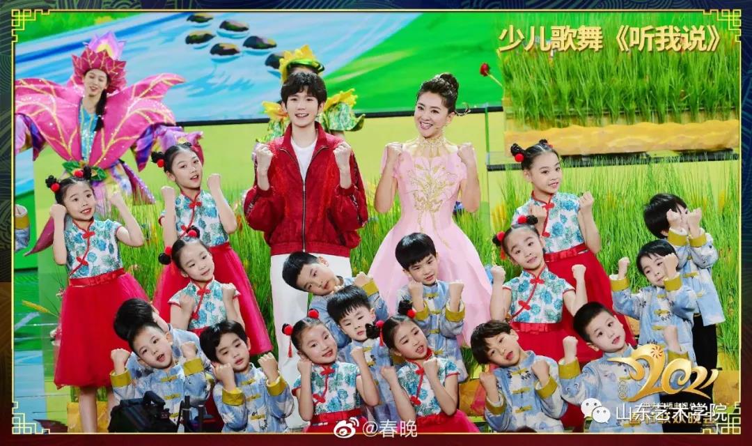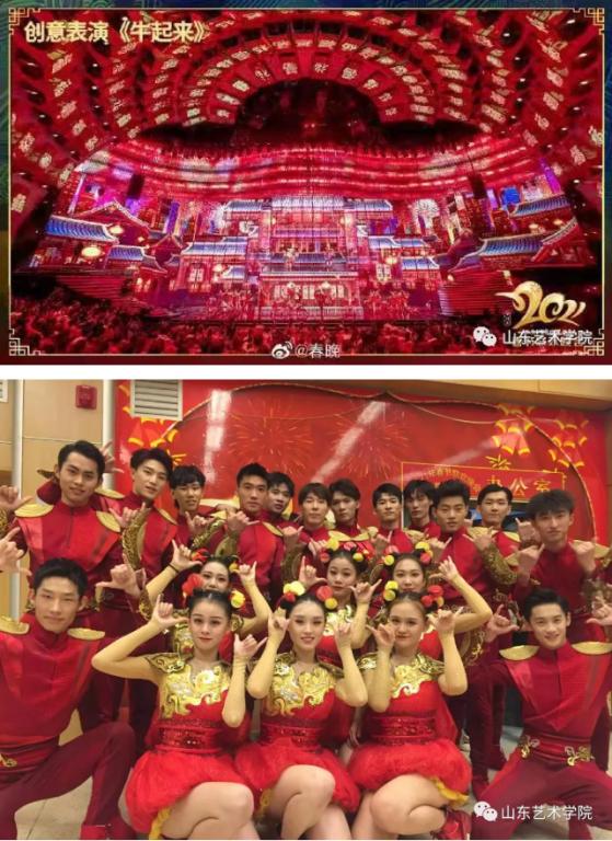 本届春晚,山东艺术学院舞蹈学院74名师生参与演出6个节目,依次为开场歌舞《万事如意》,创意表演《牛起来》,少儿歌舞《听我说》,歌曲《唱支山歌给党听》,民族歌舞《万众一心》,尾声歌舞《难忘今宵》,是继2019年、2020年后,第三次荣登央视春晚的舞台,参与人数也创新高。