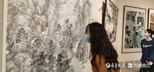 “大学四年的学习成果都浓缩在这一幅画里了,看上去是一幅中国山水画,但其中融合了现代的元素,展现的依旧是自己的一种心境。”在一幅《千山暮雪》的作品前,作者孟庆磊介绍着,这是他的毕业作品,每当看到有人驻足,他也总愿意介绍几句。