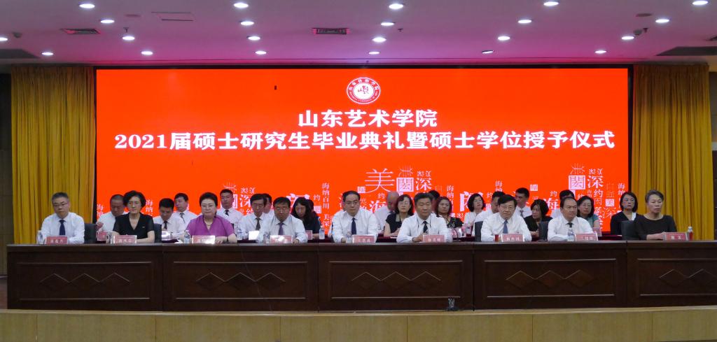 6月23日,山东艺术学院2021届硕士研究生毕业典礼暨硕士学位授予仪式在长清校区图书馆报告厅隆重举行。党委书记王洪禹,院长徐青峰,党委副书记孔祥华,副院长杨西国、刘晓静、兰绍彤,纪委书记、省监委驻学校监察专员胡凤莹,党委委员荆雷、苏茂兴出席典礼。典礼由刘晓静主持。