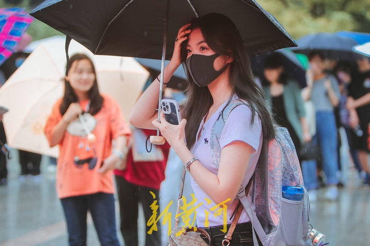 9月4日,山东艺术学院迎来2021级省内新生报到。长清校区,大一新生们在雨中撑伞来到报到现场,虽然大部分学生戴着口罩,但难以遮掩她们青春洋溢的气质与美丽时尚的形象,处处焕发着青年学子的艺术气息,成为校园内一道靓丽的风景线。
