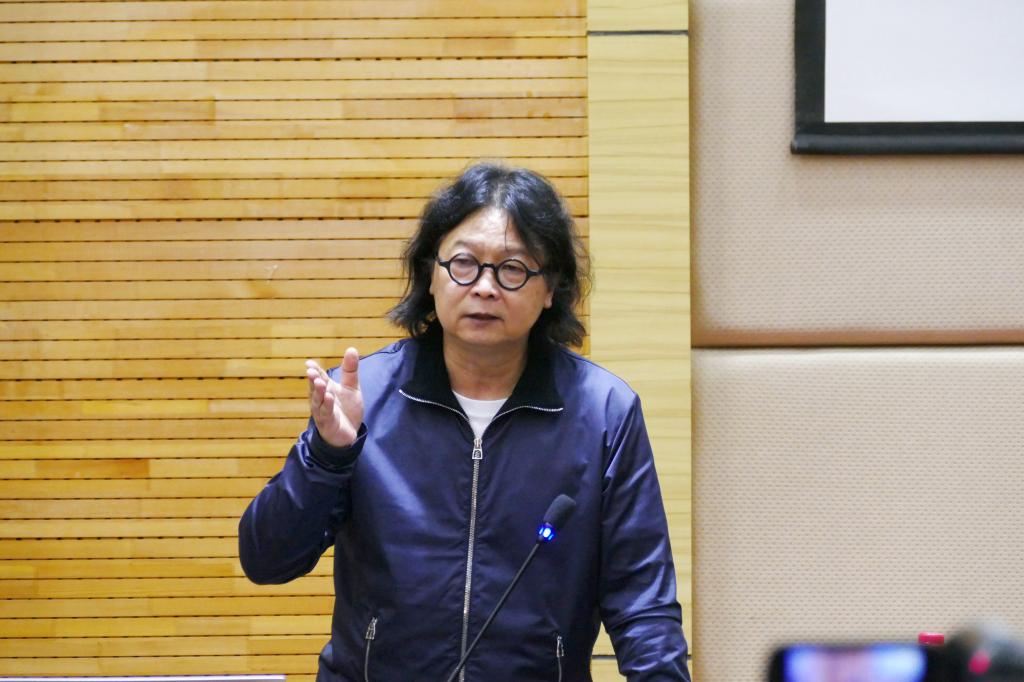 在接下来的两场学术研讨会上,隋建国教授和王衍成教授分别带来题为《空间•视觉•虚空•运动——肉身成道与技术时代》和《无间衍程》的讲座。隋建国教授在讲座中,介绍了自己四十多年的艺术实践中对创作观念、作品形式、媒介选择、时空经验等多个方面的深度理解和认识,围绕“触感”的概念对此次展览的参展作品理念做了详细阐释。王衍成教授在讲座中分享了有关他艺术创作的纪录片,他认为最关键的,还是要建立起自身的“艺术之墙”,通过变异、传播、组构、重构,然后去发现一个新的世界,新的未来。