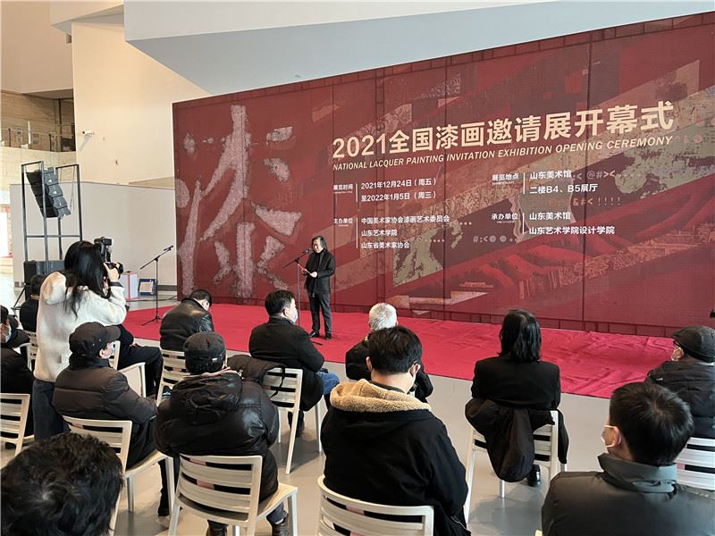 12月29日,由中国美术家协会漆画艺术委员会、山东艺术学院、山东省美术家协会主办,山东美术馆、山东艺术学院设计学院承办的“2021全国漆画邀请展”开幕式在山东美术馆举行。