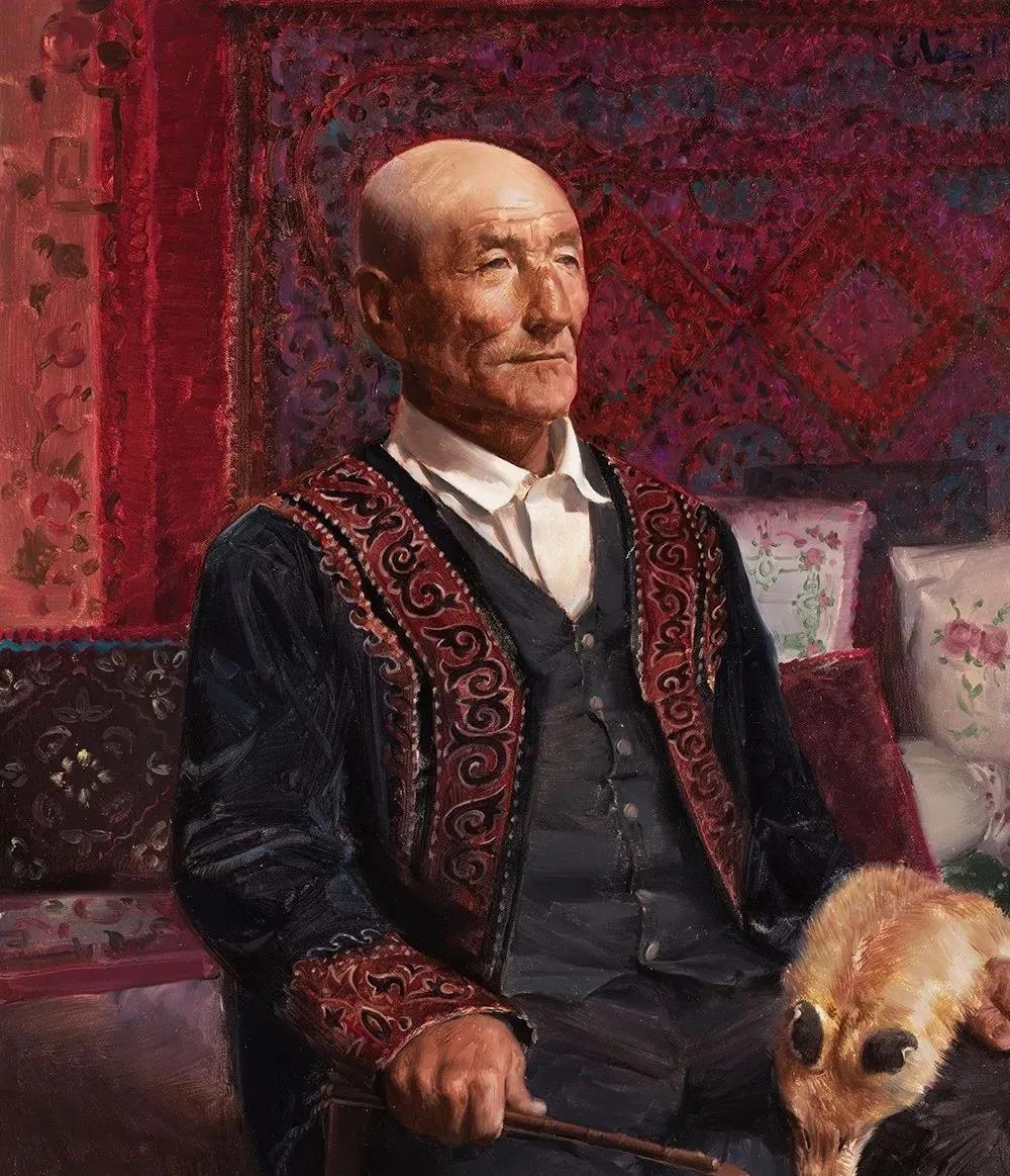 徐青峰《驯鹰老人阿里汗》布面油画 100cm×81cm 2016年