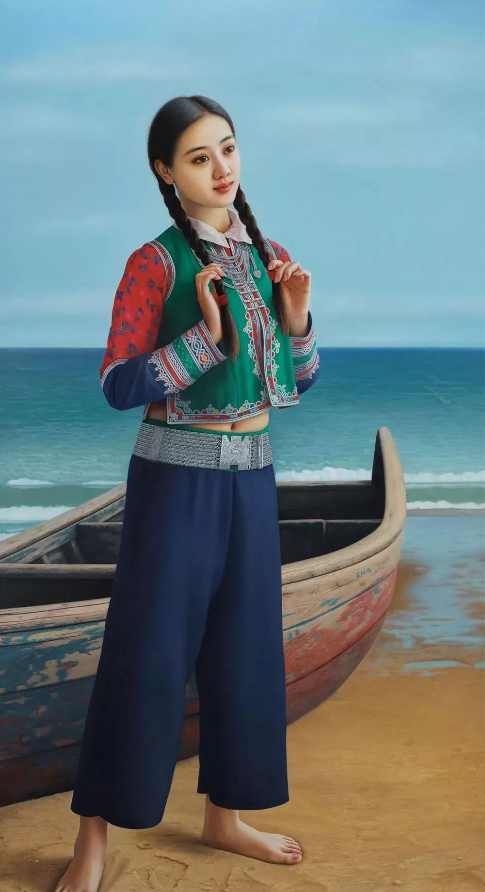 吴成伟《惠安女系列之青色韶华》布面油画 190cm×100cm 2021年