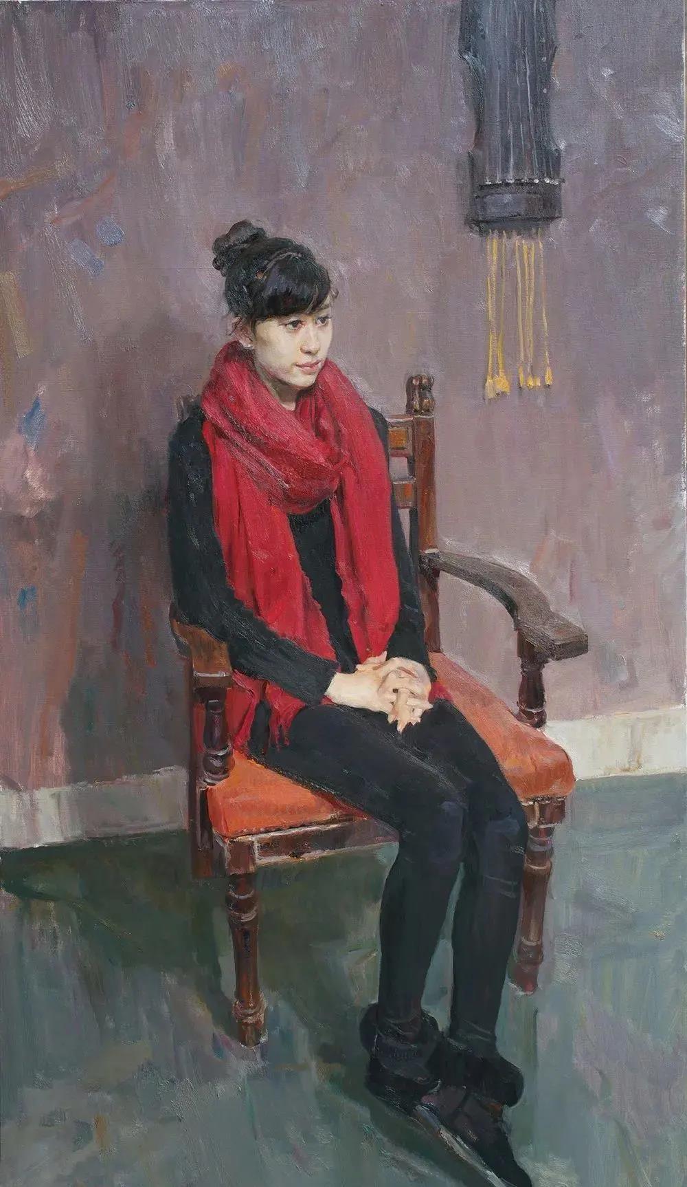 何红舟《学生肖像》布面油画 180cm×90cm 2018年