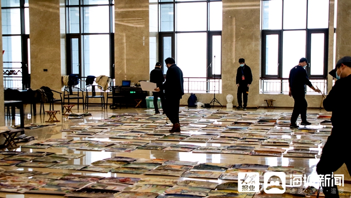 此次艺考,山东艺术学院美术专业选择在省委党校进行阅卷,现场考生试卷被整齐地铺满大厅,十分壮观;评委由多人组成一组,方便对试卷进行排列,考卷根据考生绘画作品被分为10档,评委在相互比较之下将其分配到适合的档次中。并且在省委党校阅卷是全国首例。