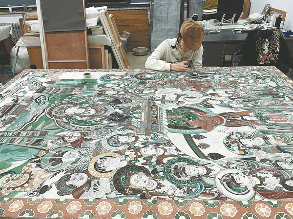Qin Yueyu, 27, from Anhui province, works in a classroom at Shandong College of Arts in Shandong province. She has brought stunning murals closer to the public with her meticulous reproductions. CHINA DAILY