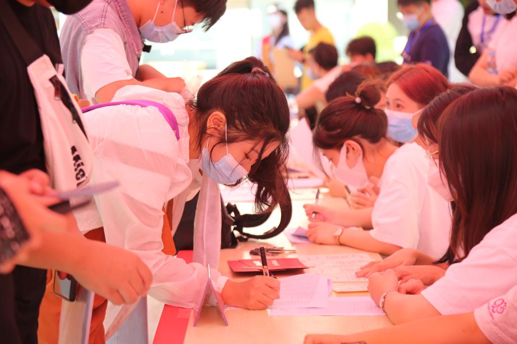 规划贴心。由于疫情防控要求,所有新生家长一律不让进校园,为让家长放心,学校开设微博视频直播,为家长介绍学校概况并“云游校园”。学校还提供了5辆公交车作为校内摆渡车,帮新生运送行李。为防止行李混淆,学校特别设计了行李贴,学生手背和行李上各一张,对号领取,便捷安全。橘色的核酸检测粘贴,成为了入住公寓的通行证,学校为方便学生,在公寓区设置了三个核酸检测点进行人员分流。核酸检测后,新生凭“核酸检测粘贴”录入面部识别信息后,便可直接入住公寓,放置行李后再进行其他报到手续的办理,为今年独自报到的新生们解决了行李搬运的大问题。