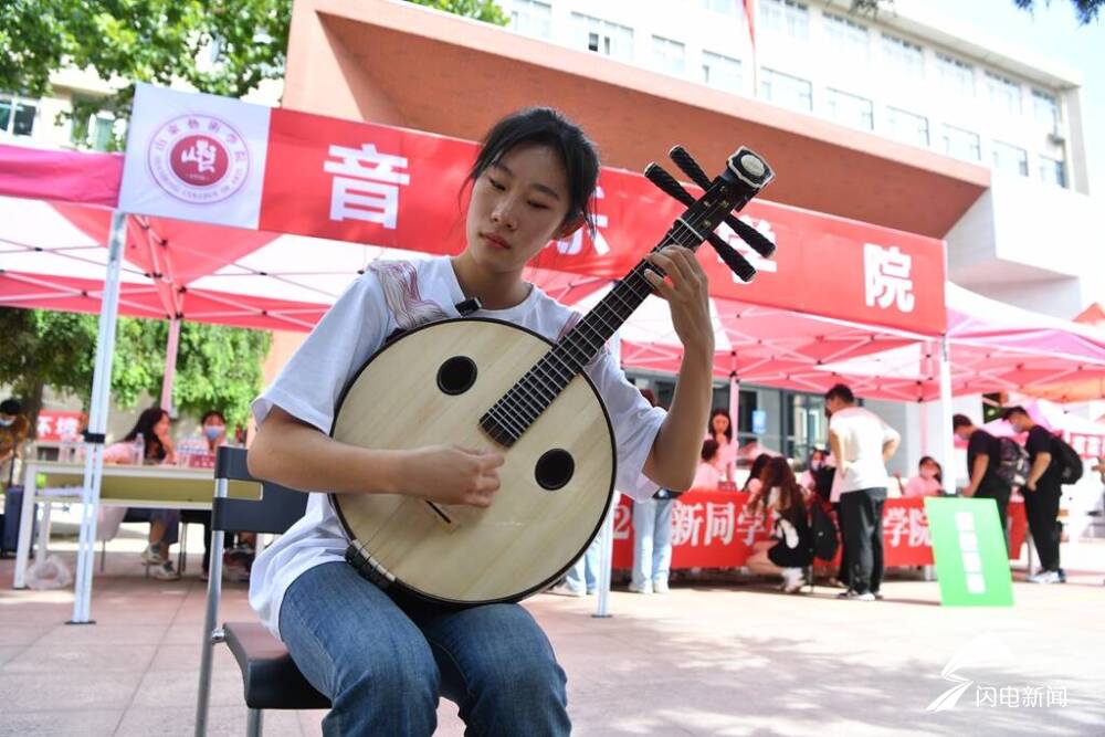 齐鲁网·闪电新闻9月8日讯 9月8日,山东艺术学院迎来“萌新”报到。在文东校区,音乐学院和现代音乐学院的不少新生早早来到学校,在报到处的小广场和展板前,拿出随身携带的乐器,一展艺术风采,上演了一场才艺大比拼。