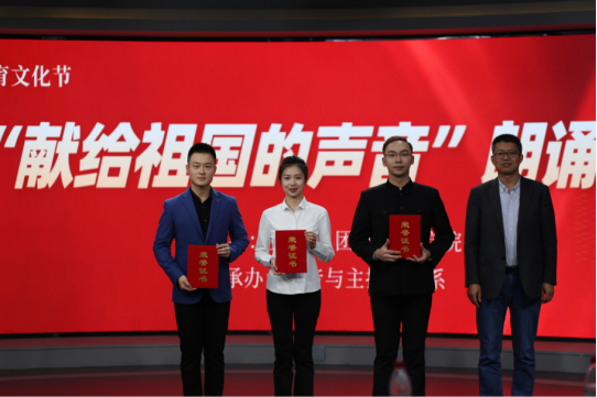 在本次朗诵大会中,由山东艺术学院戏剧学院董亮教授指导,2019级播音与主持艺术专业李耀国、2020级播音与主持艺术专业王子安朗诵的《国之永怀》荣获“艺术表现特别奖”;播音与主持艺术系张骁将副教授指导,2020级播音与主持艺术专业王子安朗诵的《我是一条古老的河流》荣获“优秀展映奖”,两位老师分获“优秀指导教师奖”,山东艺术学院荣获“优秀组织奖”。