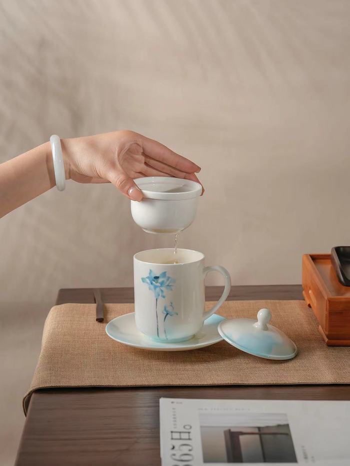 据了解,黄少晨是山东艺术学院的毕业生,回淄博创业后,连续两年获得‘齐品淄博’城市礼物创意设计大赛一等奖,市场反响也不错,就想着也能把这种创意设计带到其他城市去。这次发布的“冰清玉洁”系列产品,绘画部分取自其母校李百钧教授的“和祥玉洁”系列纸本水墨作品,再由王大海教授亲自设计成国瓷作品,汉青则负责生产销售。“这次博览会展销一体,一个很重要的原因就在于,手造产品确实越来越亲民,越来越具备实用价值。” 黄少晨表示,通过强化在设计研发、生产制造、配套产业、营销推广等各环节对消费趋势的理解和把握,手造产品也在加速从“指尖技艺”转化为“指尖经济”。
