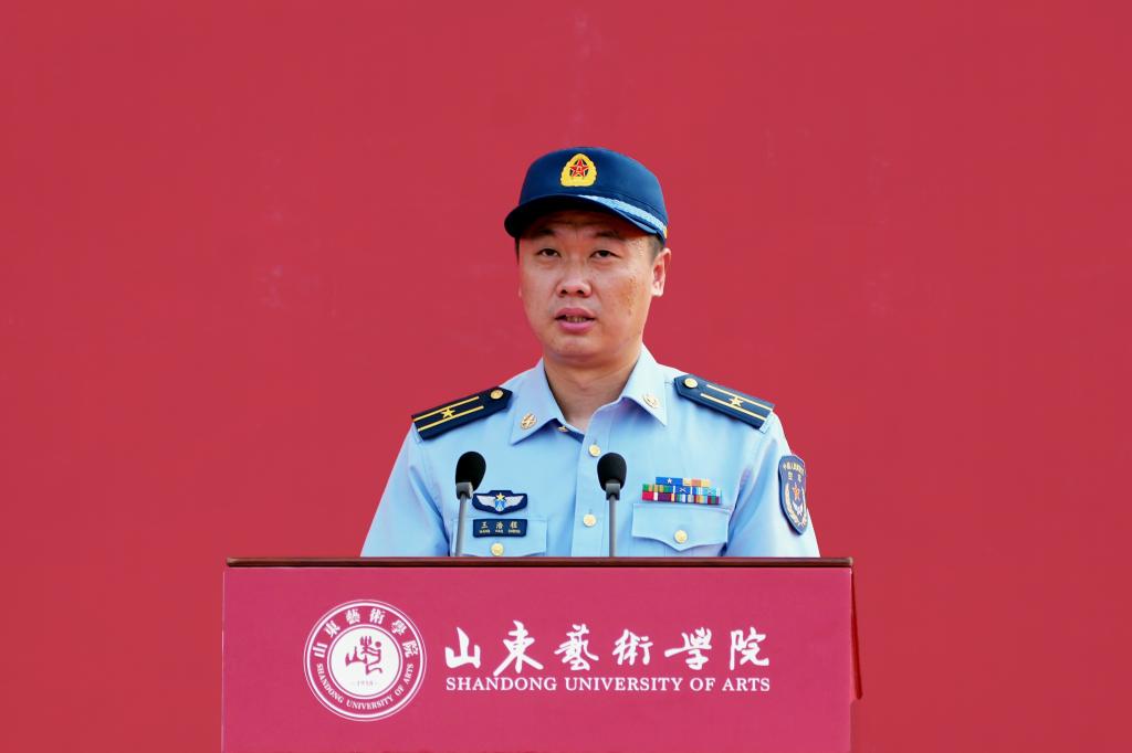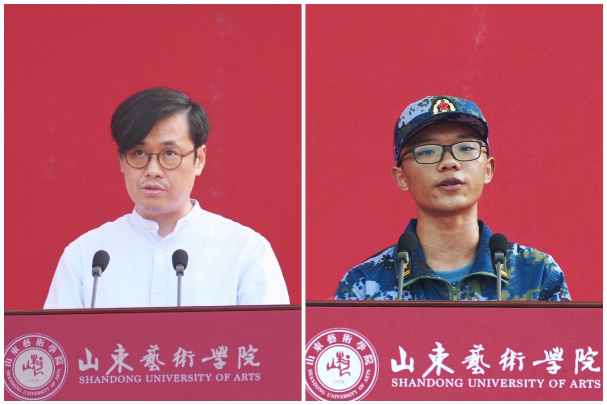 中国人民解放军第94326部队教导队指导员王浩程作军训动员讲话。电影学院副教授孙非作为教师代表发言,勉励同学们做敢于拼搏、勇往直前的新时代青年,做志存高远、德艺双馨的艺术追梦人。传媒学院2023级广播电视编导专业学生李博文代表新生发言,表示将铭记并践行“闳约深美”校训精神,全面提升自我,书写山艺人不负韶华、勤奋求学的精彩答卷。