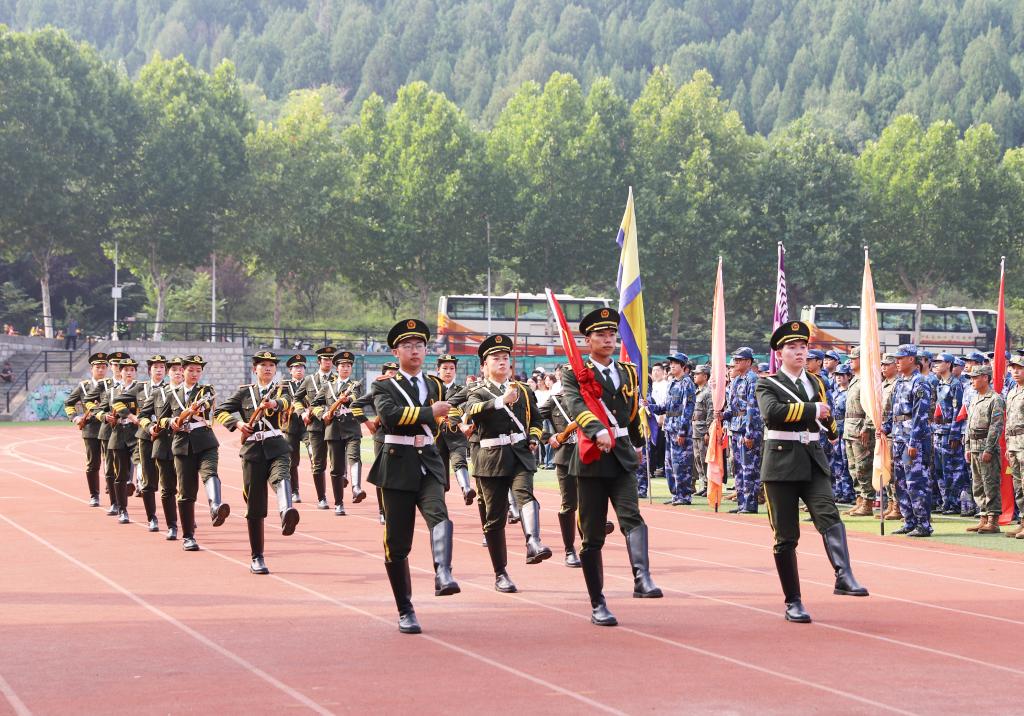王洪禹向军训团团长王浩程授旗,并宣布开训。