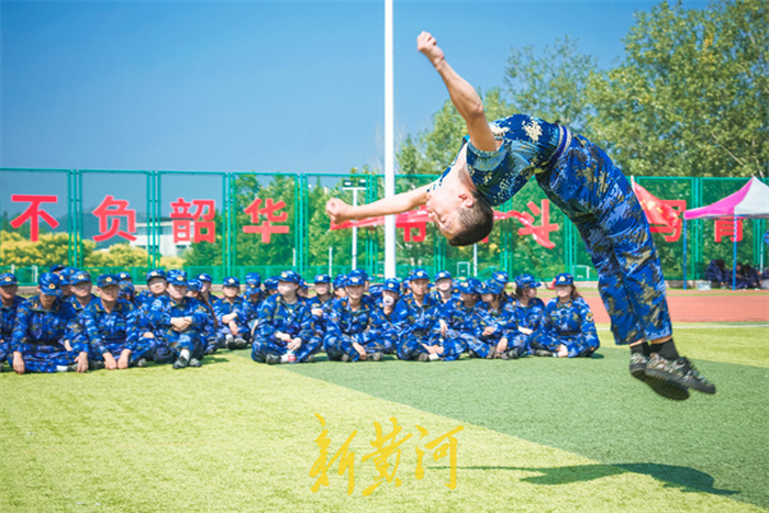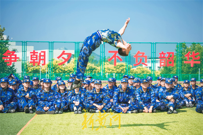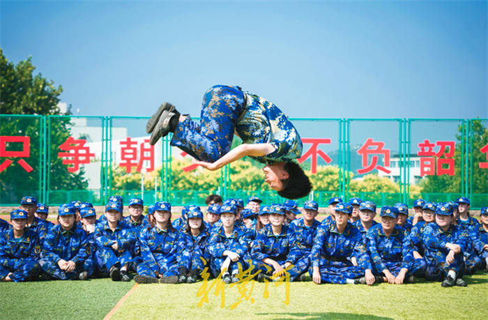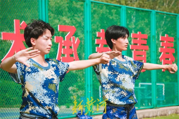 小反、站提、飞脚、旋子……9月8日,山东艺术学院长清校区军训场上,响起阵阵掌声,来自戏曲学院的新生们纷纷献上真功夫,在闪转腾挪间秀出高难度绝活,展示着戏曲的魅力。