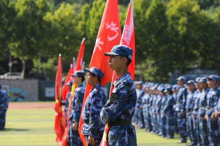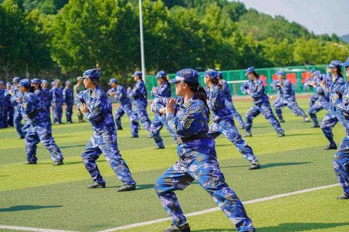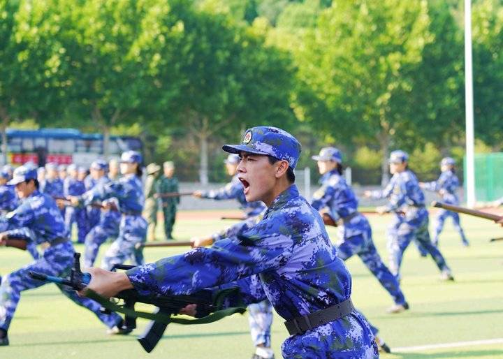 一声声响亮的口号中,新生们龙腾虎跃展示各项军事技能,展现了新一代大学生的威武之气。