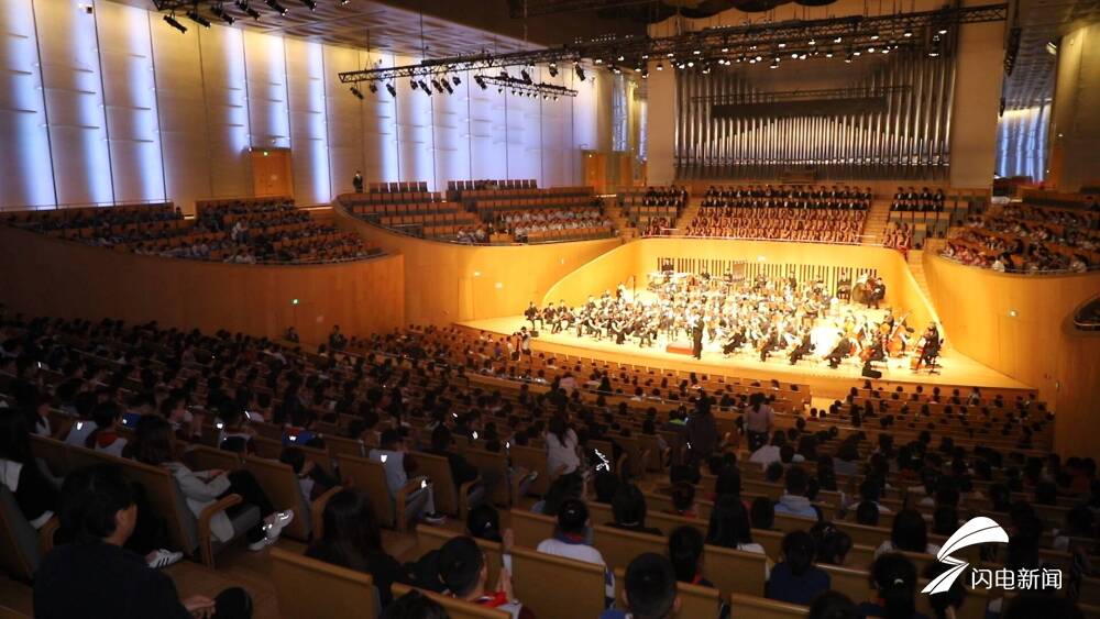 本次活动由山东省文联、山东省教育厅、山东艺术学院主办,山东省音乐家协会、山东省会大剧院、山东艺术学院音乐学院承办,济南市教育局协办。活动现场,山东艺术学院交响乐团和青年合唱团共同演绎了交响乐《中国颂》及各声部特色曲目,青年指挥家黄炎佳结合作品讲解与导赏,向观众普及了交响乐各声部、各乐器的音色特征、乐团指挥等基本常识。优美的旋律、悠扬的歌声和精彩的讲解,给现场观众带来美的享受,博得阵阵掌声。