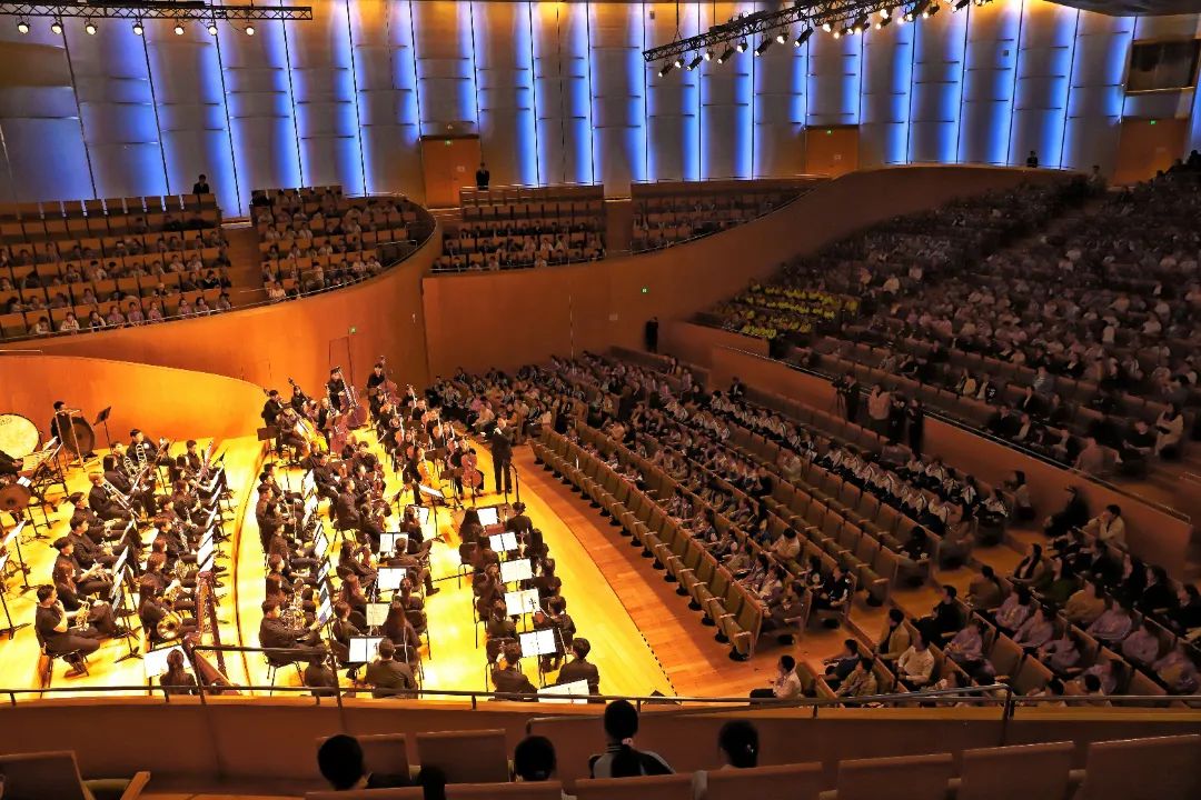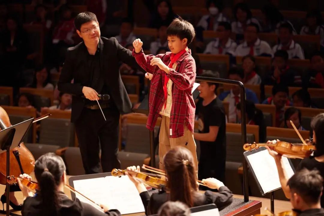 本次活动由山东省文联、山东省教育厅、山东艺术学院主办,山东省音乐家协会、山东省会大剧院、山东艺术学院音乐学院承办,济南市教育局协办。活动现场,山东艺术学院交响乐团和青年合唱团共同演绎了交响乐《中国颂》及各声部特色曲目,青年指挥家黄炎佳结合作品讲解与导赏,向观众普及了交响乐各声部、各乐器的音色特征、乐团指挥等基本常识。优美的旋律、悠扬的歌声和精彩的讲解,给现场观众带来美的享受,博得阵阵掌声。活动中,随机邀请了多名中小学生上台沉浸式体验乐队现场演出和临场指挥,在乐队成员与观众互动的热烈氛围中,实现高雅艺术普及、美育融入社会的目标。