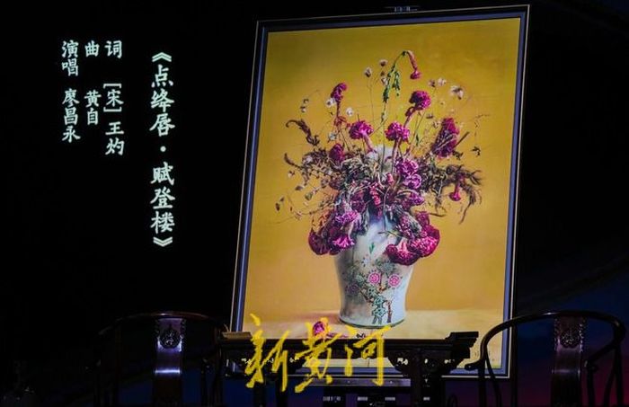 “很多中国艺术歌曲的歌词都是选自中国经典诗歌,其中很多本身就是题画诗,我们就考虑能否将绘画、书法、音乐等艺术形式相结合,通过独特的方式展现中国传统美学,体现‘诗中有画、画中有诗,诗中有乐、乐中有诗’的意境。”廖昌永说,本次演出中展示的画作,均为徐青峰及团队成员创作,其中多幅作品还是为本次演出专门创作的,他们希望通过这种方式使音乐和绘画相互赋能,献给观众一种不一样的体验。