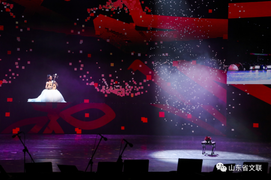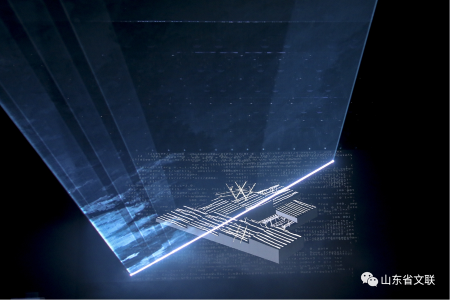 一曲《我们》响起,通过温暖的人声旋律、动人的器乐演奏表达了对人类命运、生命与爱的感怀,对生生不息的祖国大地的炙热情怀。在对过往的深切纪念和对未来的美好期许中,晚会圆满落下帷幕。此次演出的作品既结合了音乐创作的优秀传统,又提供了全新的音乐体验和表达方式,将听觉与视觉、交互表演、乐器演奏等形式相结合,创造了沉浸式的视听空间,探索了音乐的时间与空间维度,也实现了音乐与情感的实时互动,对儒家哲学、物理学的时空概念、内在生命情感、文人诗意、多民族文化等众多主题做出了富于未来化的震撼展现。音乐会的创作团队由作曲家、演奏家和工程师共同组成,涵盖了计算机视觉、红外体感控制、机器听觉、AI生成视觉、脑机接口、虚拟人、机器狗等多种前沿技术形式,中央音乐学院李小兵教授作为团队带头人,担任本场演出的音乐总监及导赏,山东艺术学院交响乐团担任交响乐演奏,山东艺术学院音乐学院青年合唱团担任合唱,由山东艺术学院青年指挥家黄炎佳担任指挥。