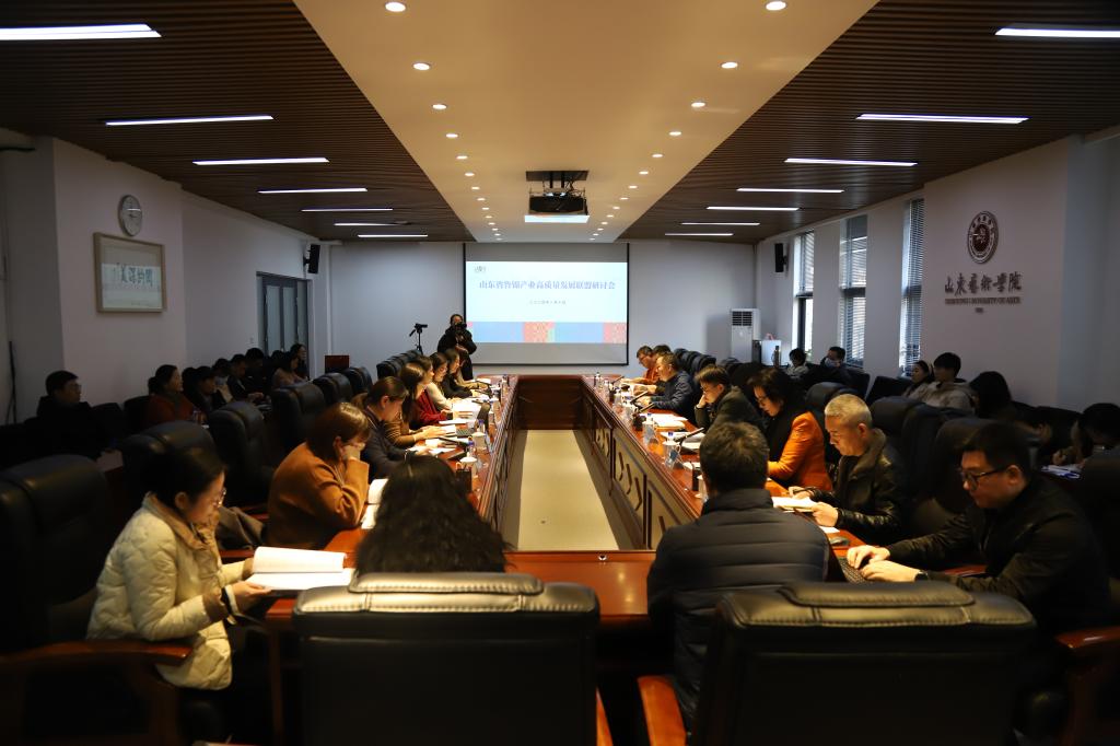 1月10日,山东省鲁锦产业高质量发展联盟成立大会在山艺长清校区召开。山东省工业和信息化厅总经济师、二级巡视员王楗夫,山东艺术学院院长徐青峰出席会议并致辞。省工信厅轻工纺织产业处处长管晓艳,山东省服装设计协会会长周锦,学校党委委员、副院长荆雷出席会议,科研处、城市艺术与创意学院负责人及山东省鲁锦产业高质量发展联盟各成员单位代表共计70余人参加会议。