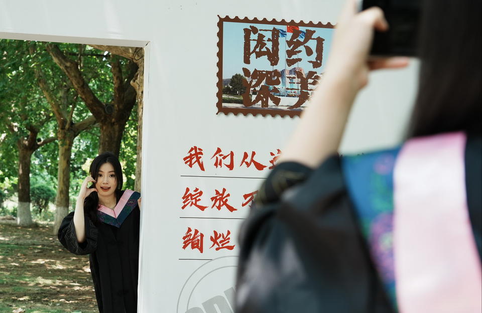 学校还专门设置了毕业生明信片立体拍照打卡处,大家在这里按下快门,一张个人专属毕业季明信片便成为永恒。