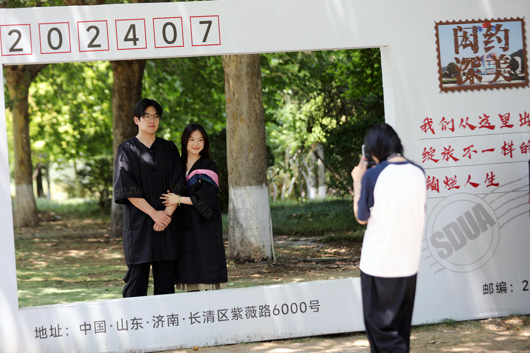 6月20日上午,山东艺术学院2024届学生毕业典礼举行。告别之际,同学们留下各种“高颜值”的毕业照,作为大学生活的留念。