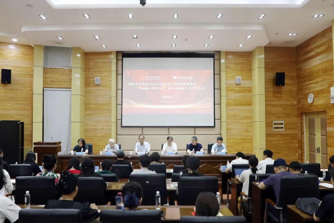 6月17日上午,国家艺术基金2024年度艺术人才培训资助项目“年画融入现代生活”新年画创新工艺人才培养开班仪式在长清校区举行。中国艺术研究院原院长韩子勇,山东艺术学院党委书记王洪禹,中国艺术研究院研究员孙建军,山东省艺术研究院院长林凡军,山东省艺术研究院党总支副书记李磊,山东省文化馆副馆长王芹,山东女子学院艺术设计学院院长赵月,齐鲁工业大学美术馆馆长林斌,山东自生堂年画雕版博物馆馆长吴军等出席活动。项目学员及学校师生代表参加活动。开班仪式由美术学院院长程林新主持。