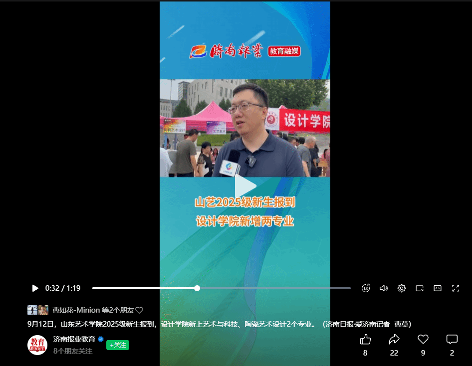 【济南报业教育】9月12日,山东艺术学院2025级新生报到,设计学院新上艺术与科技、陶瓷艺术设计两个专业。