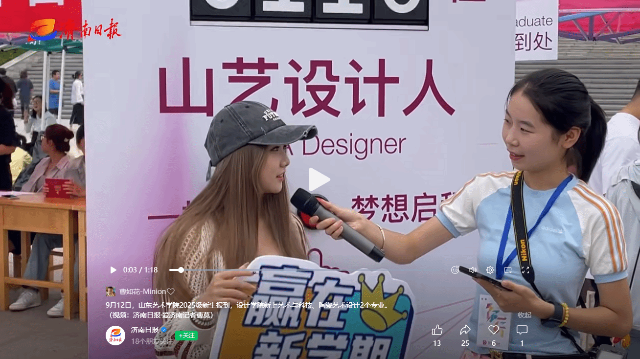 【济南日报】9月12日,山东艺术学院2025级新生报到,设计学院新上艺术与科技、陶瓷艺术设计2个专业。
