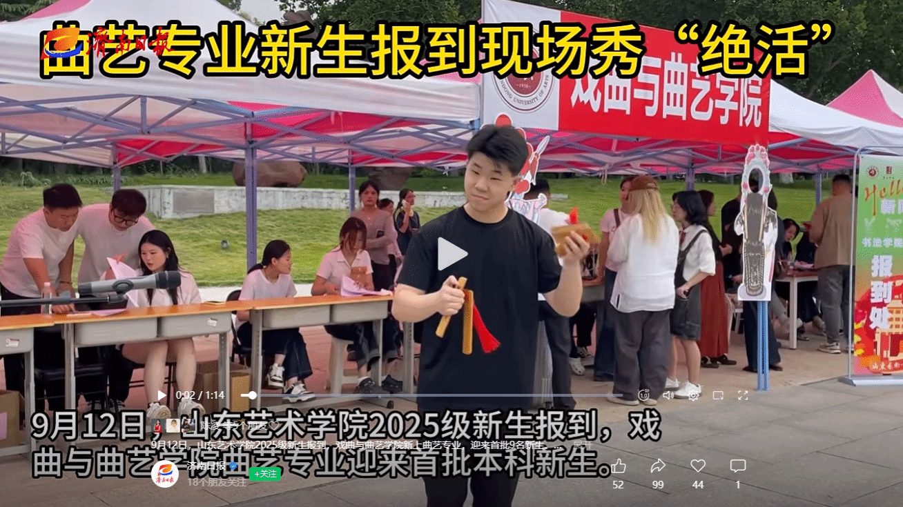 【济南日报】9月12日,山东艺术学院2025级新生报到,戏曲与曲艺学院曲艺专业迎来首批本科新生。