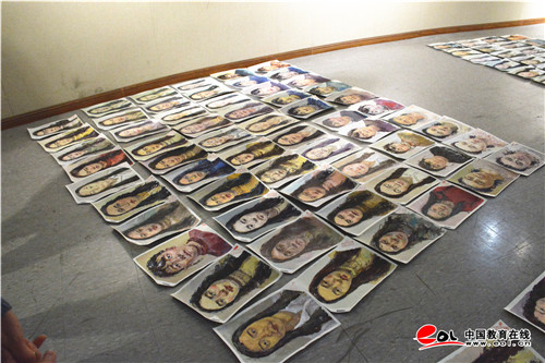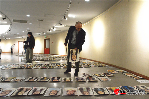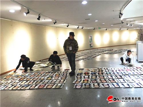 走进山东艺术学院图书馆一楼的阅卷现场,铺满大厅的半身人像色彩画作映入眼帘,上千份试卷分成十档,平铺在大厅内,评卷专家手持长杆,正在审视经过分档后的试卷。发现有不合适的试卷,几位评卷专家会商后,进行分档调整。