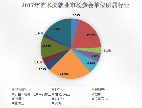 本次招聘会有来自全国各地的316家用人单位参会,其中初等教育单位9家,高等教育单位2家,国有企业11家,科研设计单位4家,民办非企业60家,三资企业16家,综合类单位40家,其它企业174家。涉及十几个行业,教育行业比重最大占23.42%,服务业次之占19.30%,文化艺术业占12.34%,建筑安装业占6.65%,广播、电视、电影和音像业占4.53%,商务服务业占4.43%,零售业占4.43%,房地产业3.24%,软件业占2.91%,批发业占1.94%,其它行业占16.50%。本次招聘会参会单位大部分为山东省内企业,占85.44%,省外共45家单位占14.56%。本次招聘会提供7888个工作岗位,来自山东艺术学院及周边院校的艺术类学生及部分学生家长5000余人参加,现场场面异常火爆。